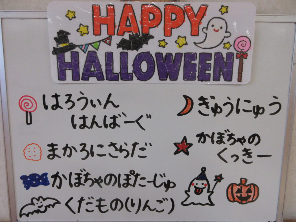 今日の給食とおやつは、ハロウィンメニューでした(^-^)