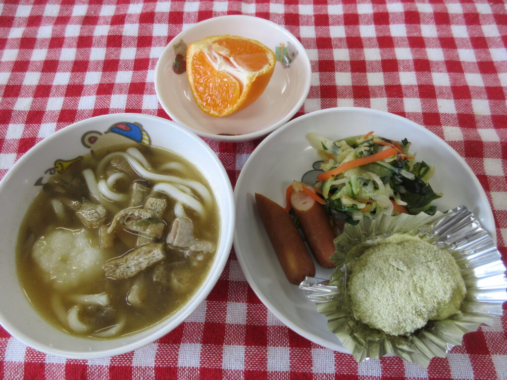 小さいクラスのお友だちには、うどんを多めにして力うどんとして提供しました。おもちは、小さく小さくちぎって提供しました。