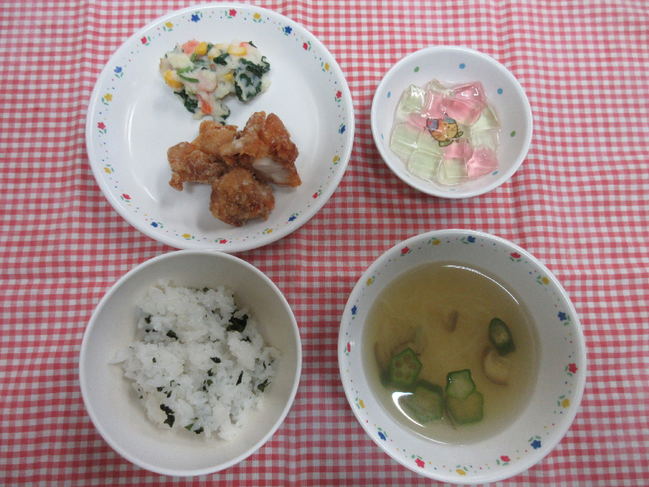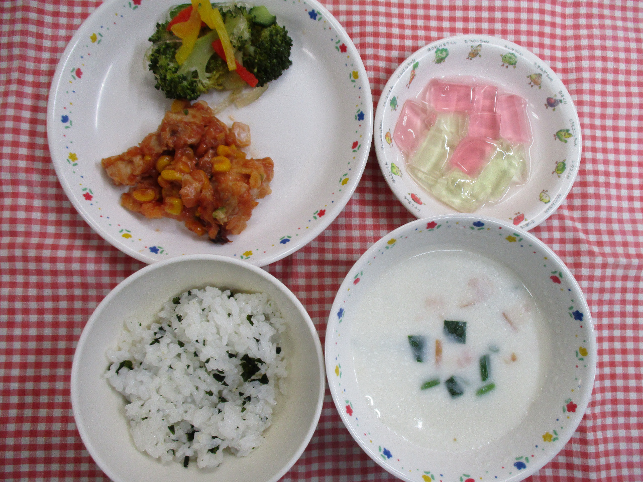 心をこめた手作り給食やおやつ、離乳食はお子さんにあわせた個別のメニューなどを作成しています。