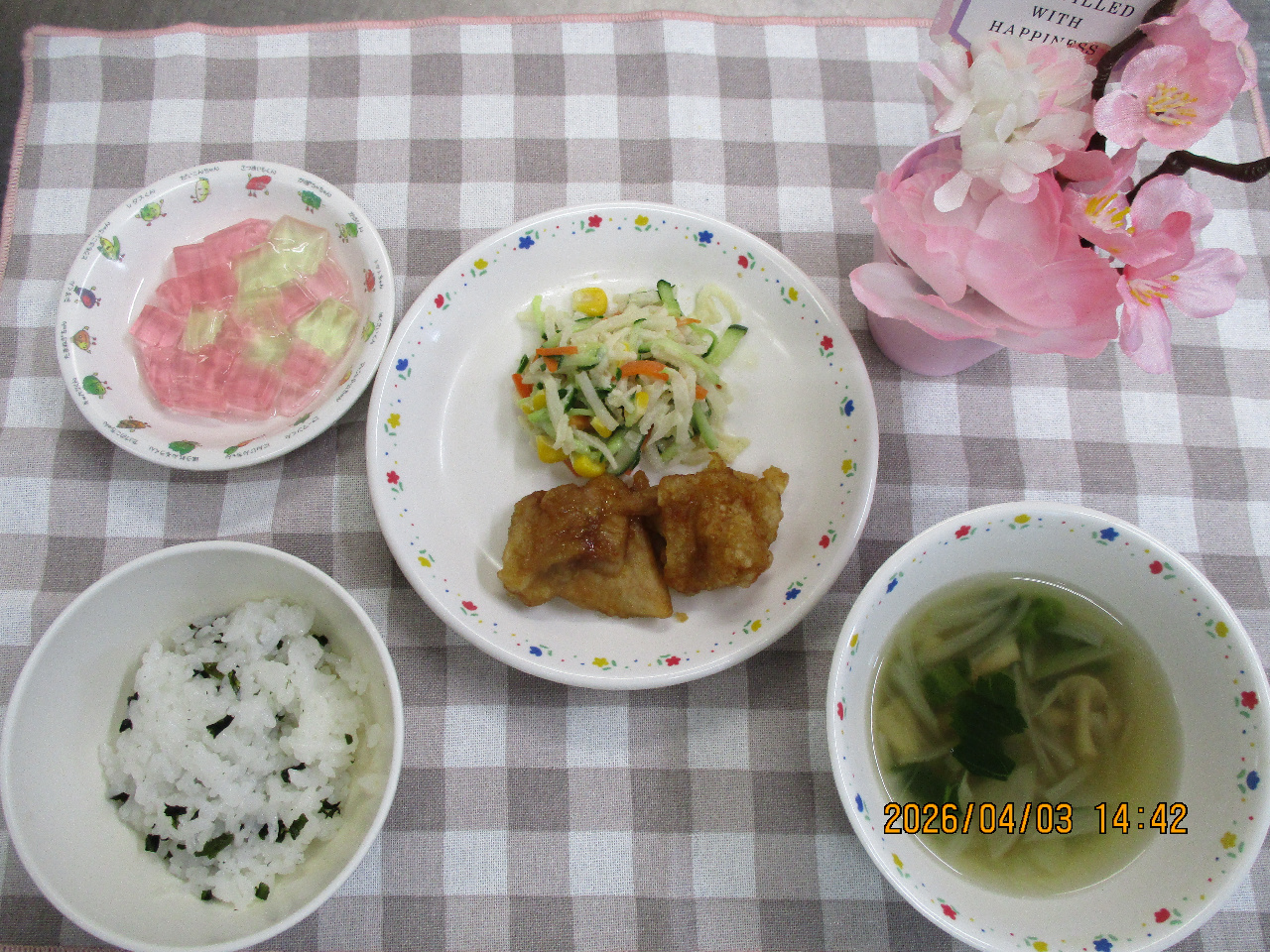 心をこめた手作り給食やおやつ、離乳食はお子さんにあわせた個別のメニューなどを作成しています。