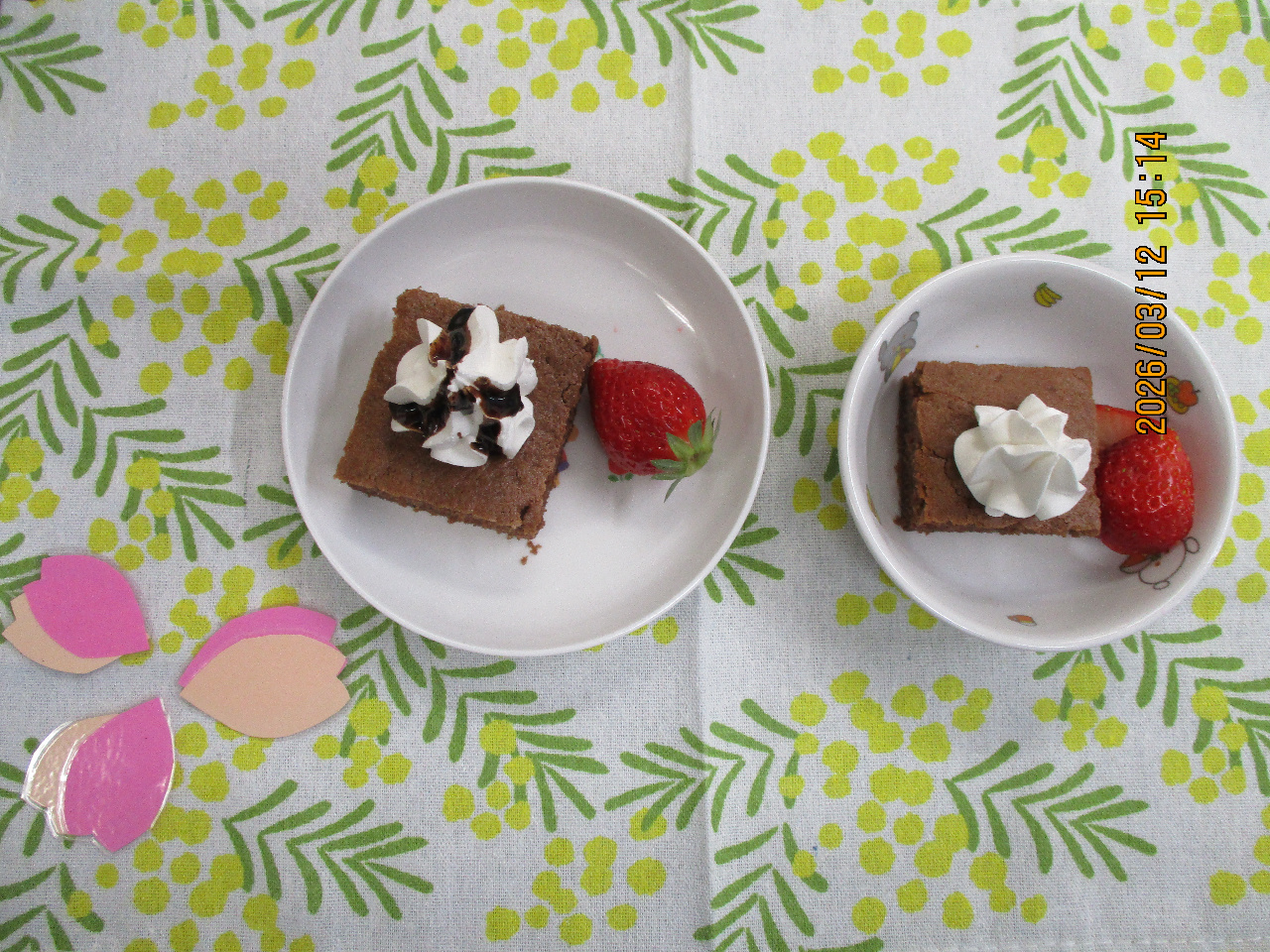 おやつのココアケーキも「お店のケーキみたい!」と、にこにこしながら食べてくれました(o^―^o)